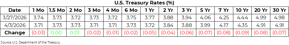 U.S. Treasury Rates Weekly Update for April 3, 2026