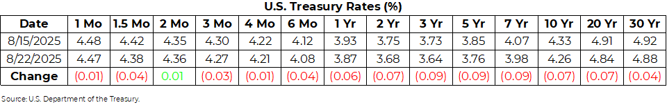 U.S. Treasury Rates Weekly Update for August 22, 2025
