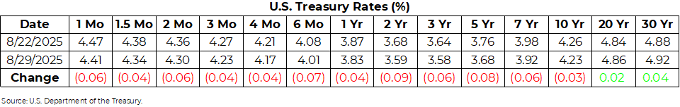 U.S. Treasury Rates Weekly Update for August 29, 2025