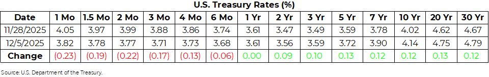 U.S. Treasury Rates Weekly Update for December 5, 2025