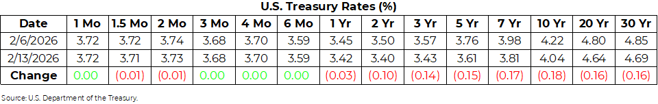 U.S. Treasury Rates Weekly Update for February 13, 2026