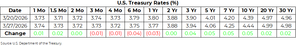 U.S. Treasury Rates Weekly Update for March 27, 2026